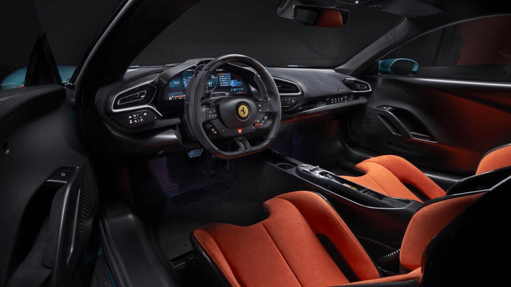 Despite the racing DNA embedded in this car’s exterior, the interior is nothing short of luxury. All the style and substance you would expect from a road-going Ferrari are blended with extensive use of carbon fibre and Alcantara for a lightweight, race-inspired feel.